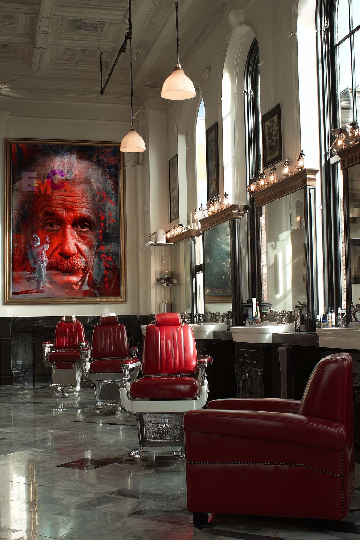 Gravity” is a new twist on that iconic face and more importantly that HAIR! Einstein's stylist was a true madman. Honestly, it looks like he stuck a fork in the universe’s biggest electrical socket just to see what would happen. Behind those wild eyes is the man who turned math into poetry, while an astronaut photobombs the scene to remind us that space selfies are also a byproduct of genius. And of course, E=mc² is floating around like Einstein’s personal autograph—because when you bend the laws of physics, you deserve to sign your work in neon. No AI or word prompts were used in the creation of this digital art piece.