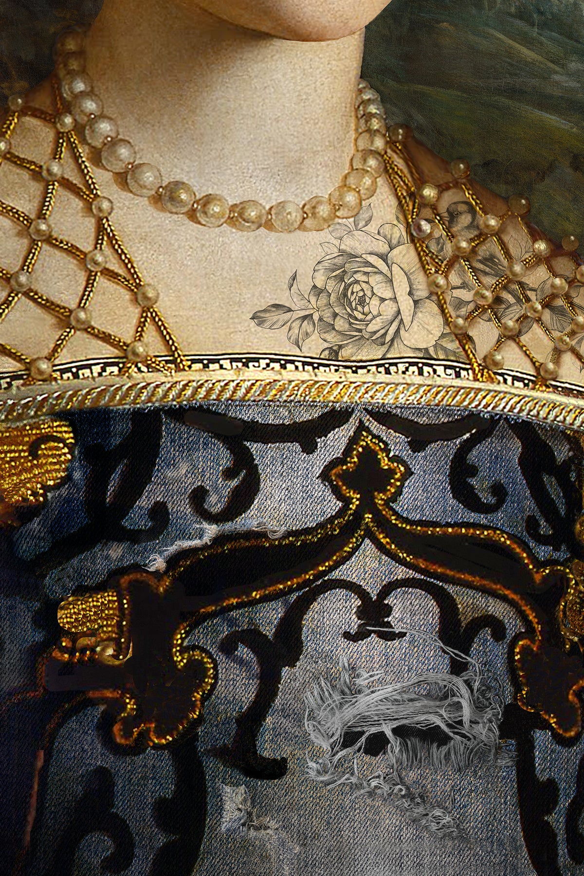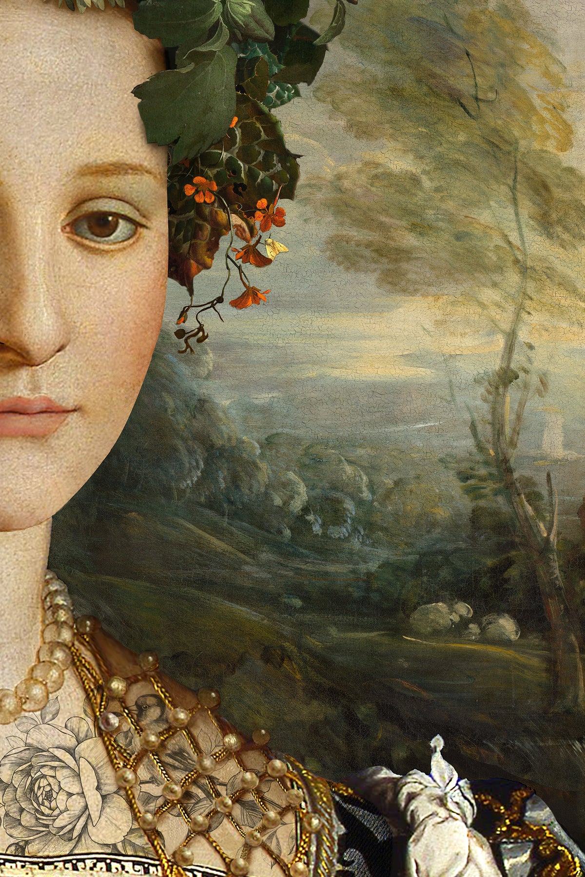 Meet "She Was A Wild Flower", the original flower child who clearly took “wearing florals” a little too literally. She’s giving Renaissance realness with a side of Coachella influencer energy. Regal? Yes. Subtle? Absolutely not. This is what happens when your stylist is Mother Nature and she’s feeling extra. It’s a portrait that whispers aristocracy but shouts, “I’m with the band.”