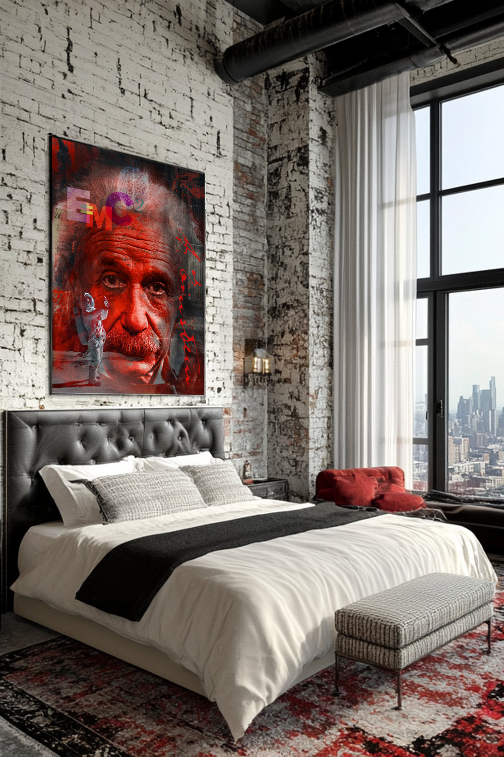 “Gravity” is a new twist on that iconic face and more importantly that HAIR! Einstein's stylist was a true madman. Honestly, it looks like he stuck a fork in the universe’s biggest electrical socket just to see what would happen. Behind those wild eyes is the man who turned math into poetry, while an astronaut photobombs the scene to remind us that space selfies are also a byproduct of genius. And of course, E=mc² is floating around like Einstein’s personal autograph—because when you bend the laws of physics, you deserve to sign your work in neon.